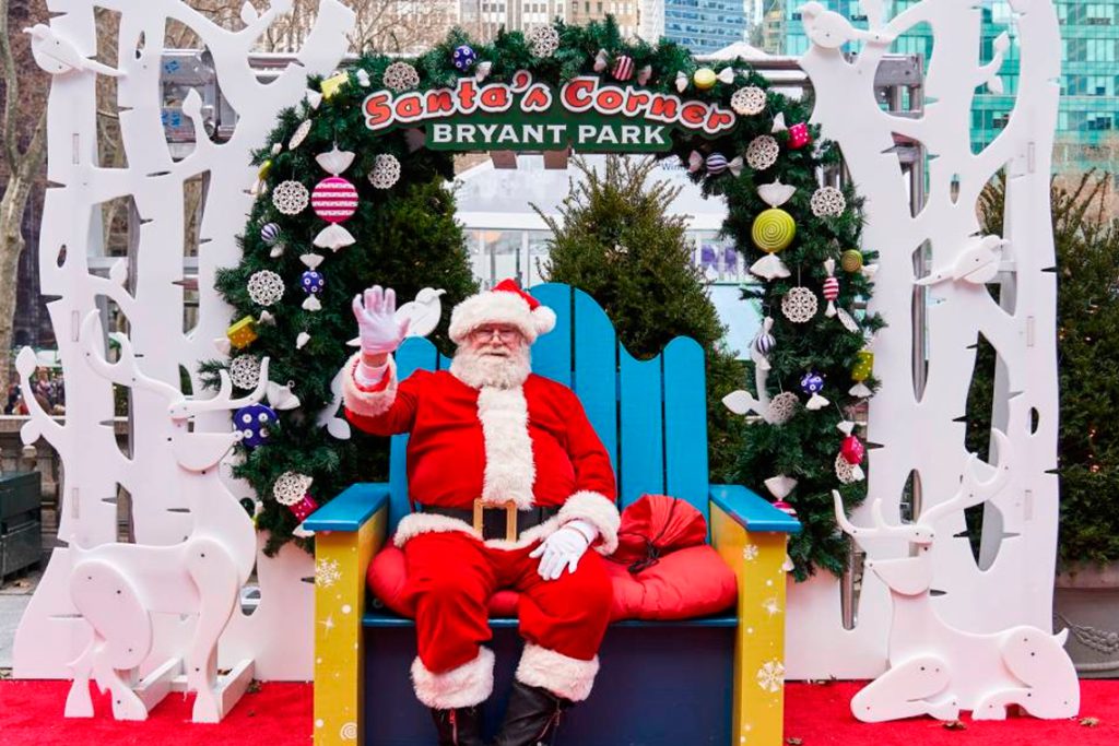 Bryant Park Santa is located on the rink deck next to The Chalet, and will open from 10am-noon each day through Thursday, December 21, 2026. Guests are welcome to borrow complimentary props for their photos or bring their own.